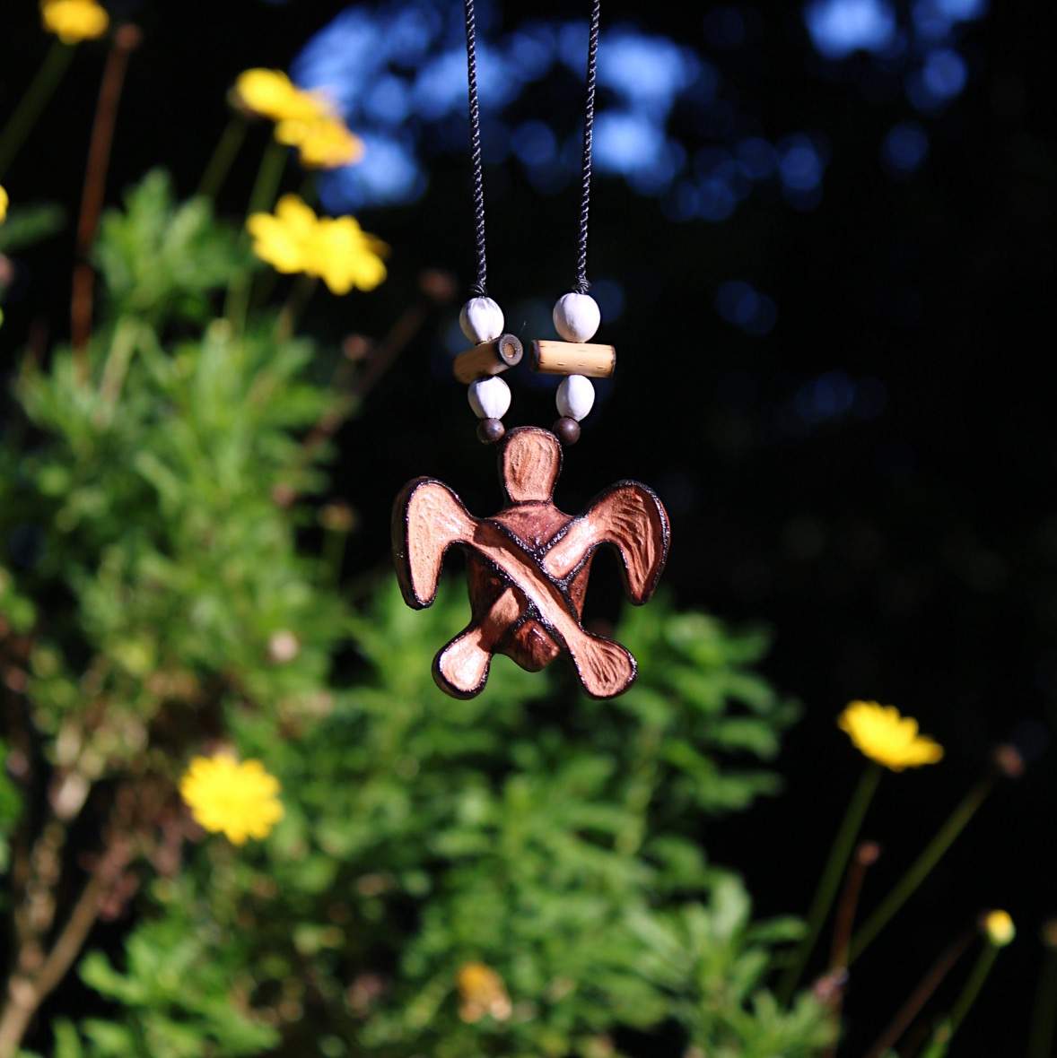 Collar tallado en Caoba en alto y bajo relieve.