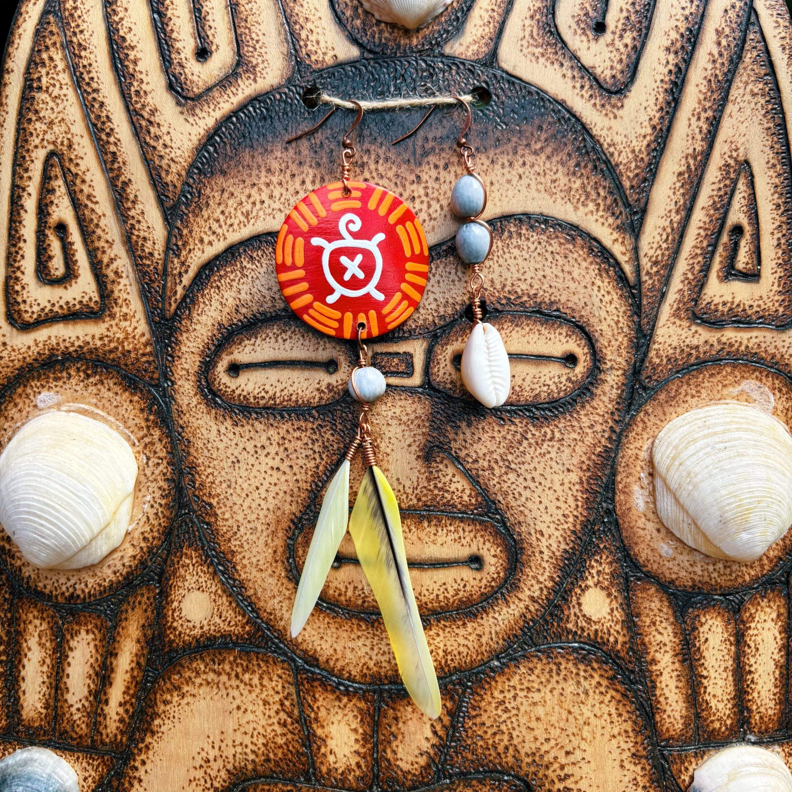 Conecta con la Madre Tierra utilizando hermosas pantallas hechas con elementos que nos brinda la naturaleza. Hermosas plumas de muda natural, higüera y semillitas nativas. Cada una es única.