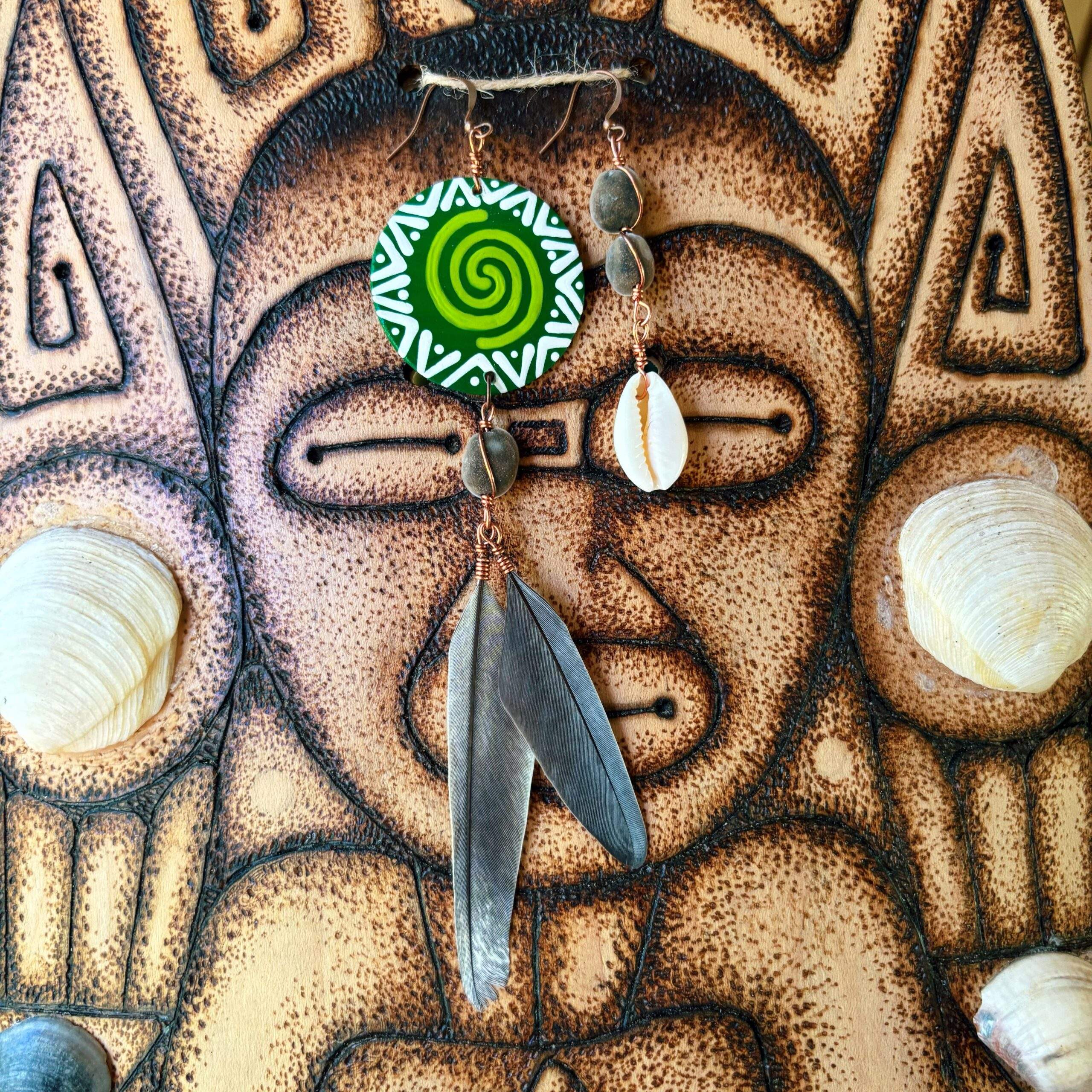 Conecta con la Madre Tierra utilizando hermosas pantallas hechas con elementos que nos brinda la naturaleza. Hermosas plumas de muda natural, higüera y semillitas nativas. Cada una es única.
