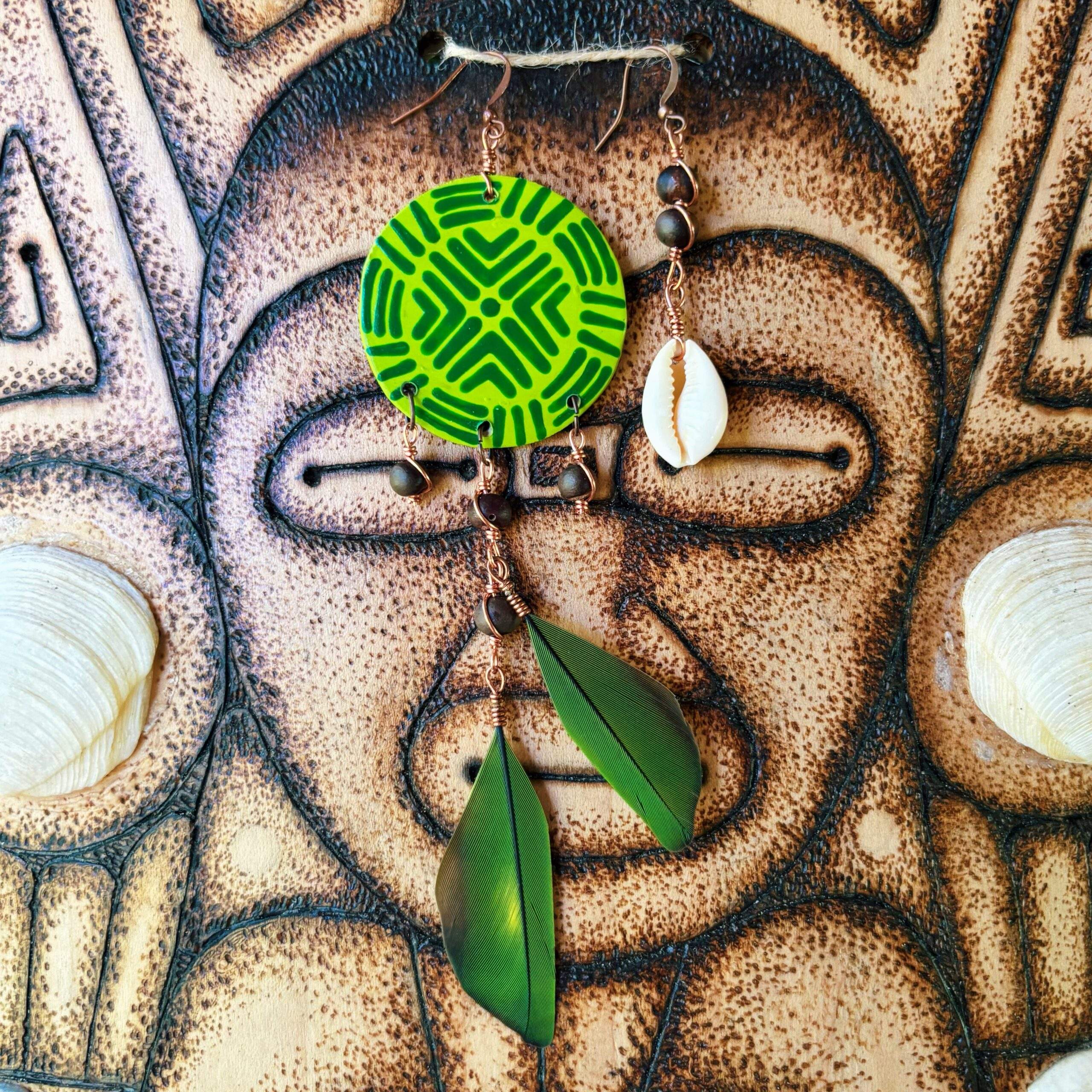 Conecta con la Madre Tierra utilizando hermosas pantallas hechas con elementos que nos brinda la naturaleza. Hermosas plumas de muda natural, higüera y semillitas nativas. Cada una es única.