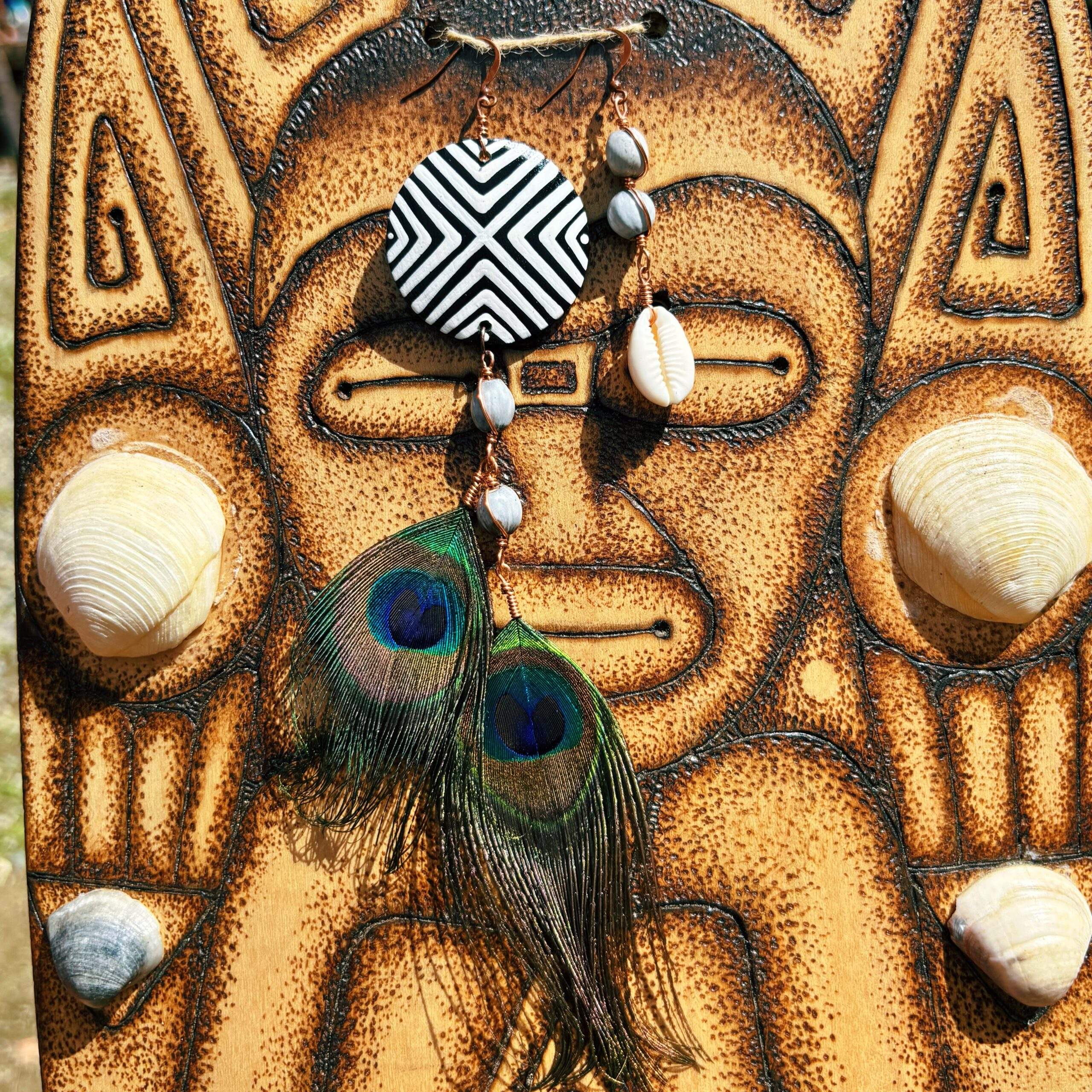 Conecta con la Madre Tierra utilizando hermosas pantallas hechas con elementos que nos brinda la naturaleza. Hermosas plumas de muda natural, higüera y semillitas nativas. Cada una es única.