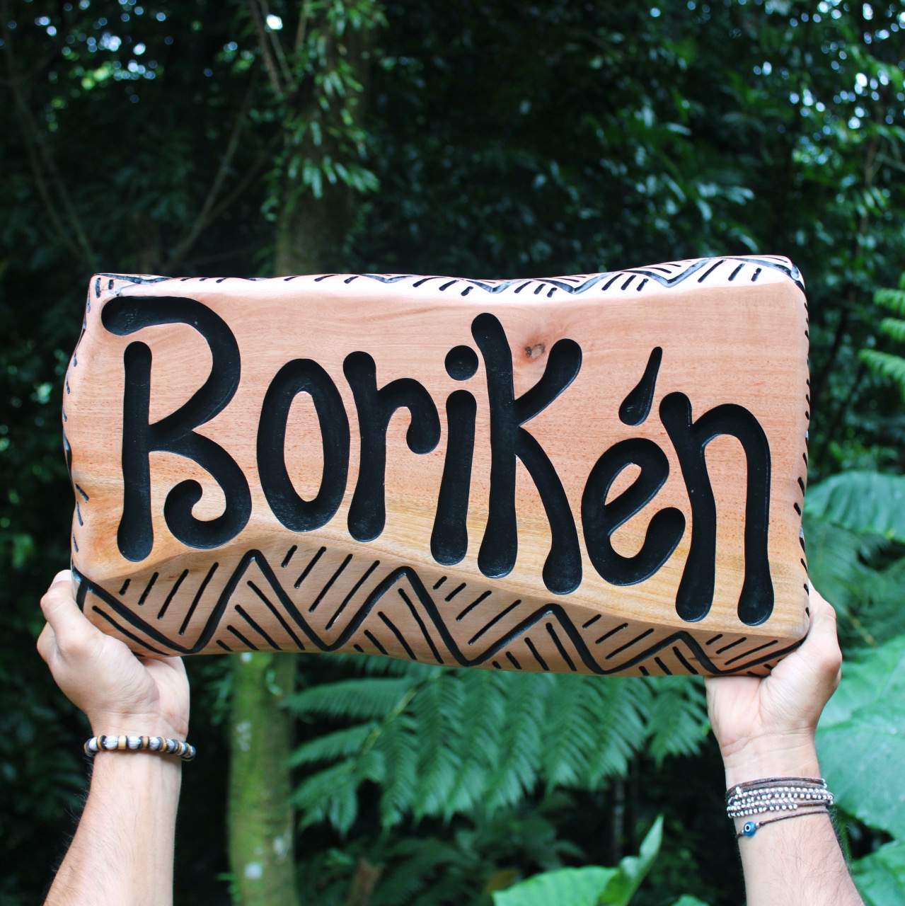 Pieza artesanal decorativa para interior en madera del país con un acabado con brillo sin alterar el color natural de la madera.